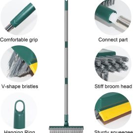 Bathroom Cleaning Brush with Wiper 3 in 1 Tiles Cleaning Brush Floor Scrub Bathroom Brush with Long Handle 180° Rotate Cleaning Brush Home Kitchen Bathroom Cleaning Accessories(Heavy)
