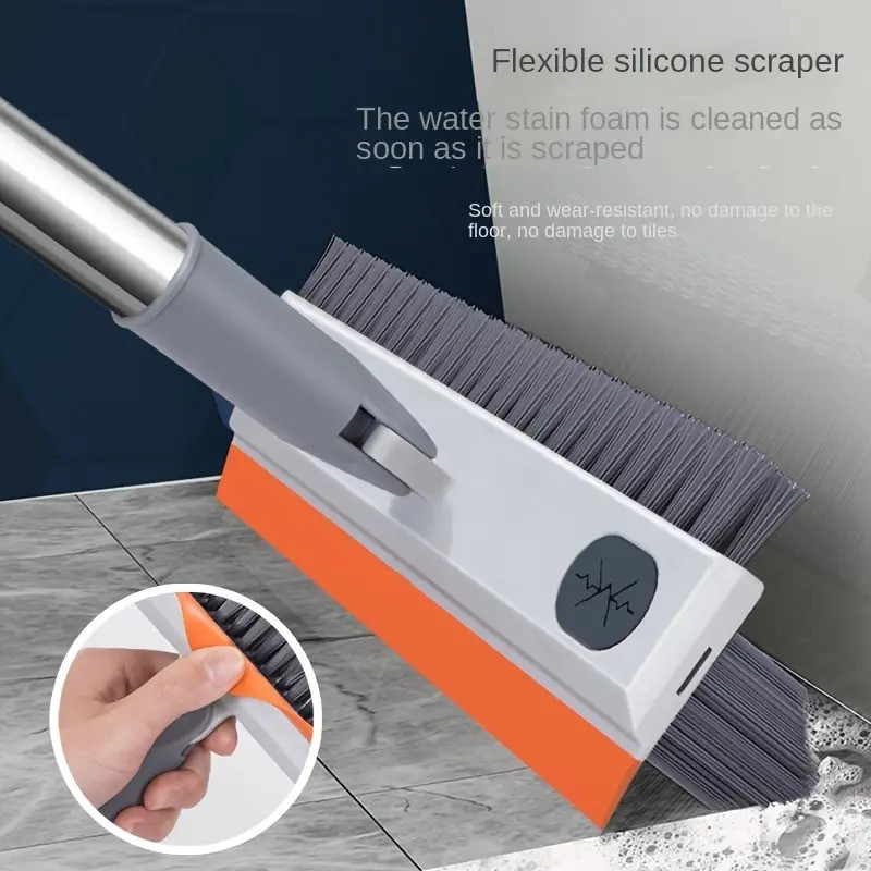 - WHITE UPGRADED 3 IN 1 FLOOR SCRUBBER WITH WIPER ; Bathroom cleaning brush comes in 3 in 1 function that is two sided scrub brush and rubber scrape. Bathroom brush ‘s stiff bristles is used for scrubbing the floor/wall, after brushing the floor, you can easily scrape off the sewage with the rubber squeegee.